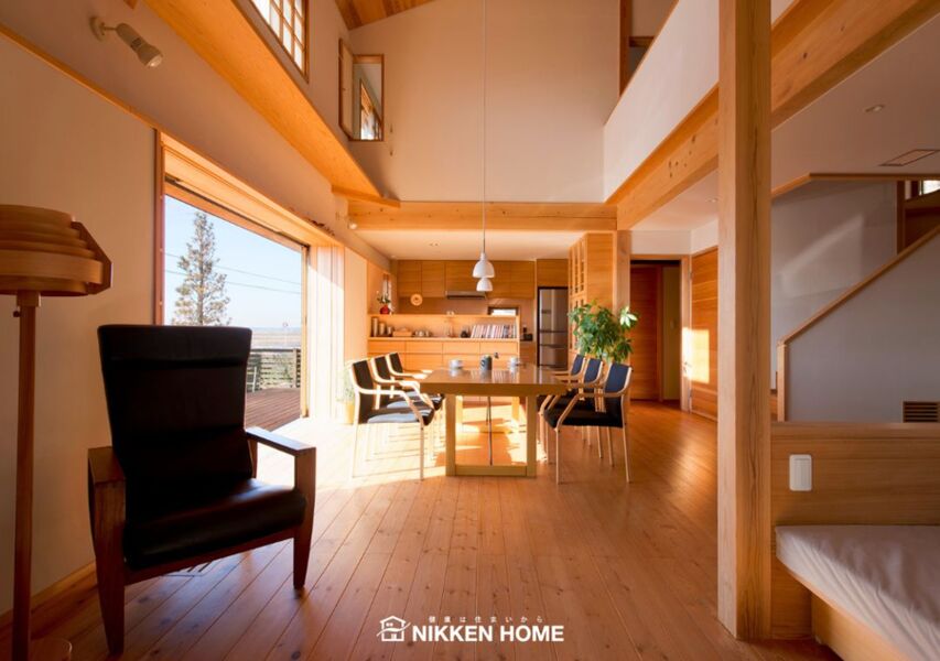 1.古民家調の落ち着いた雰囲気で、ゆったりとくつろげるリビング。