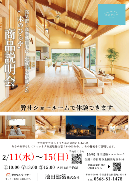 | 参加費用: | 無料 | 会場名: | 池田建築(株)ショールーム |