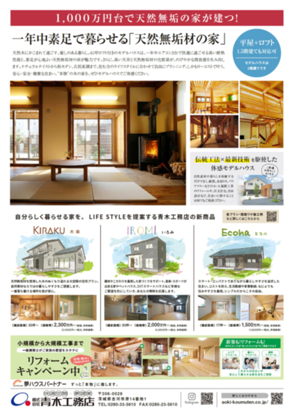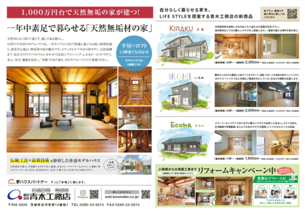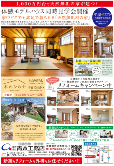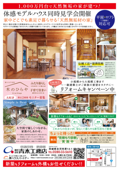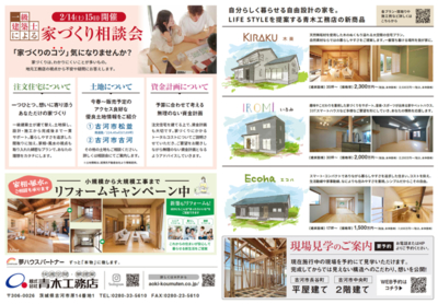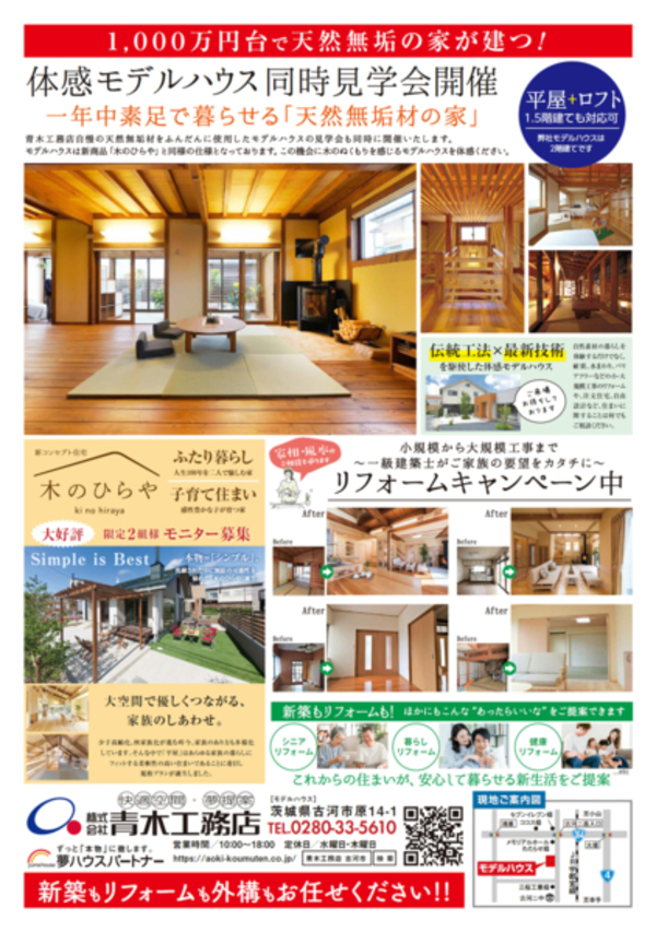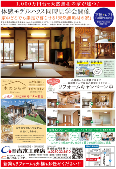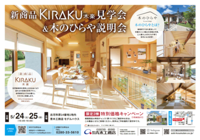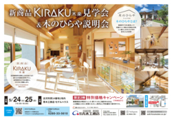 新商品「KIRAKU 木楽」と同じ仕様のモデルハウスにて、新商品と木のひらやの説明会を開催いたします!