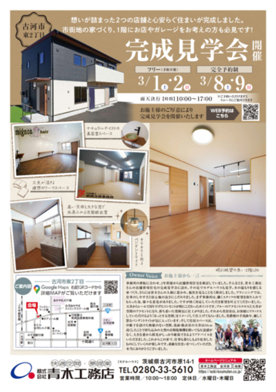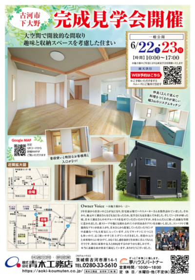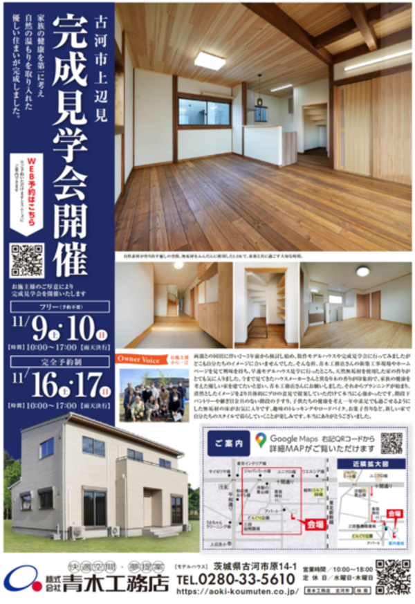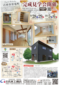 この度、施主様のご厚意により完成見学会を開催いたします。