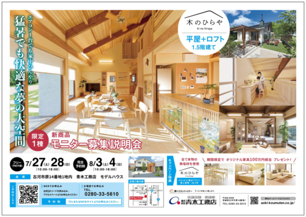 「木のひらや」のモニター募集に伴い、仕様やプランをご紹介する説明会を開催いたします。