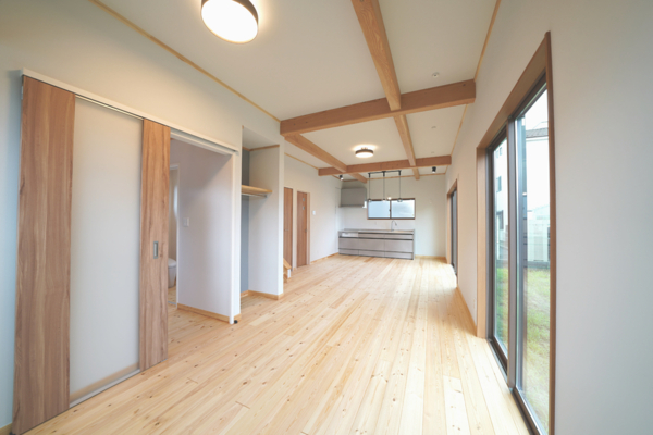 一年中素足で暮らす天然無垢材の平屋です...