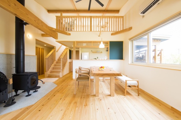 結露に悩まされていた50代ご夫婦が、調湿する無垢材を使用した薪ストーブを愉しむ...