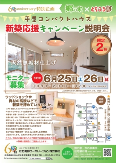 ウッドショックなど物価が高騰している状況から新築を諦めていませんか?コンパクトハウスで価格を抑えつつも、居心地のいい家づくりをお手伝いします。プランや仕様、特典など企画の詳細に関しては説明会にて発表します。たくさんのご参加お待ちしております。