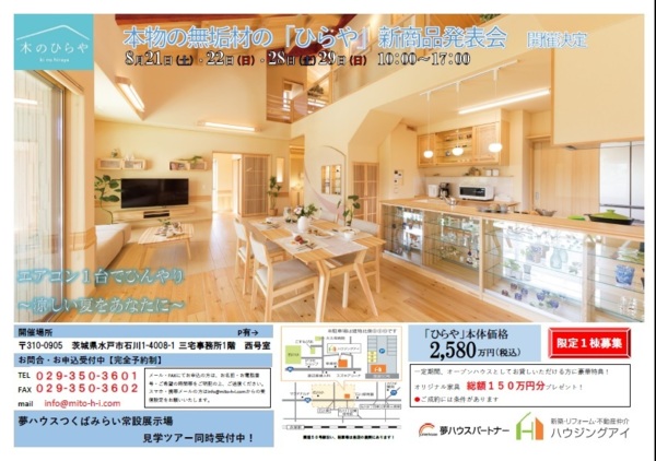 本物の無垢材の『ひらや』新商品発表会の開催が決定しました。この機会にぜひ快適な『ひらや』ライフを...
