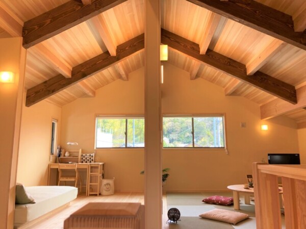 自然素材をふんだんに使用し、大空間でありながら夏はエアコン1台、冬は薪ストーブで快適に過ごせる夢の住まいをぜひご体感ください。