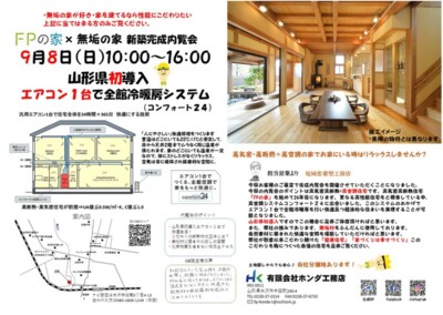 見学会完成見学会 [ 山形県米沢市 ] 「FPの家」✖「無垢の家」新築完成内覧会 2019年9月8日 「FPの家」✖「無垢の家」新築完成内覧会 山形県初導入の全館空調システム(コンフォート24)をご体感頂けます。夏は暑く冬は寒い山形の気候でもエアコンたった1台で快適空間をご提案致します。 山形県初導入ですので是非1度ご体感ください。 開催時間 10時~16時 参加費用 無料 定員 なし 開催場所 山形県 米沢市 城南5丁目4-13 会場名 「FPの家」✖「無垢の家」新築完成内覧会 ※ スマートフォンでこのページを開くと、地図アプリでナビゲーションを使用できます。