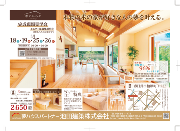 今人気の「木のひらや」のモニター様となって頂けるお客様を【限定1棟】で募集いたします。特別価格およ...
