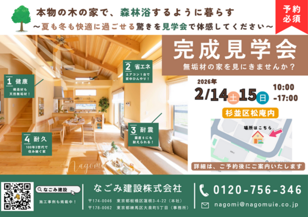 夏も冬も快適に過ごせる、天然無垢材のモデルハウスが完成しました。