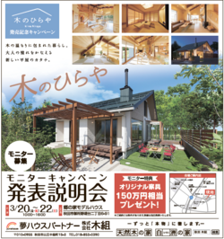 新商品発表記念の特別価格でモニターハウスの建主様を募集します。3棟...