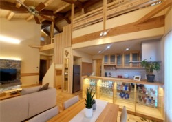 「木のひらや」シリーズの中でも人気の間取り、天然木に囲まれた大空間。高断熱高気密+遮熱住宅を是非ご体感下さい。