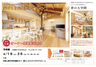 こだわりの素材と施工法で作る、安心安全な天然無垢の家「木のひらや」のモニターを募集します。