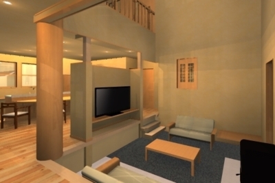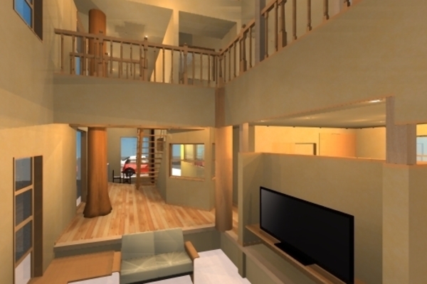 玄関からホールに入ると、3階小屋裏までの開放感は、必見。