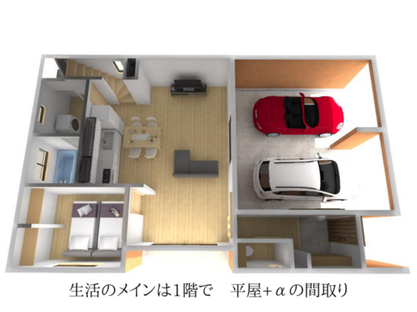 森の中で暮らしているような木の香り。2.6mの高い天井がもたらす解放感。真壁による上質な空間。構造体の卓越した強さ。厚さ30mmの天然無垢の床。珪藻土クロス。高性能な断熱材と遮熱シートは優れた省エネ性能を。またリビングから愛車を眺められるガレージも設置。この家のすべてに魂と匠の技が生きています。実際に住まわれるこの家で、まずはご体感ください。