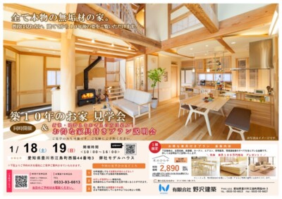 イベントその他のイベント [ 愛知県豊川市 ] 築10年のお家 見学会 2025年1月18日(土)~2025年1月19日(日) 全て本物の無垢材の家. 普段は見れない、建ててから10年後の姿をご覧いただけます。 開催時間 ①10:00 ②13:00 ③15:00 参加費用 無料 定員 なし 開催場所 愛知県 豊川市 江島町西脇44-3 会場名 (有)野沢建築 ※ スマートフォンでこのページを開くと、地図アプリでナビゲーションを使用できます。