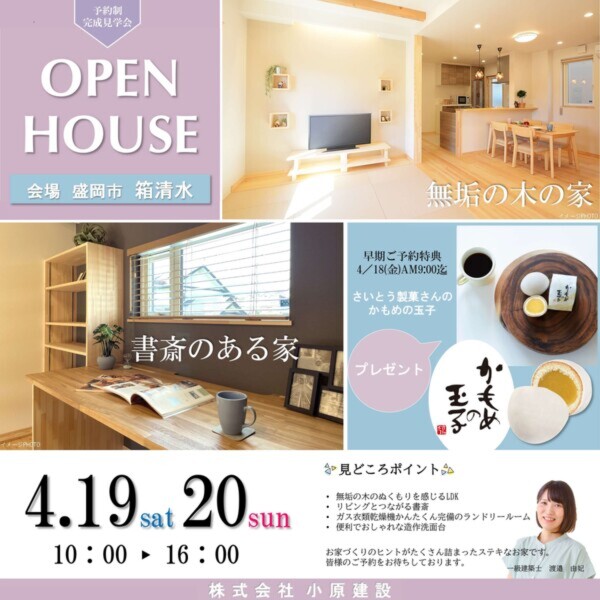 | 会場名 | 岩手県盛岡市箱清水 完成見学会 |