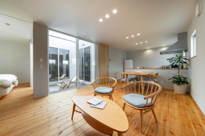暮らしと仕事、どちらも心地よく過ごせる住まいを目指しました。お菓子工房と住まいを一件にした空間は...