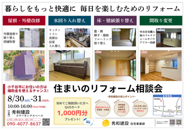 8月30日・31日に住まいのリフォーム相談会を開催します!