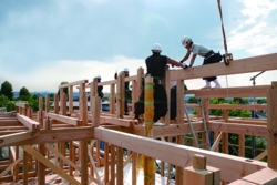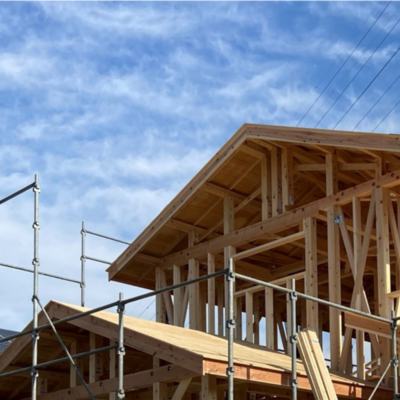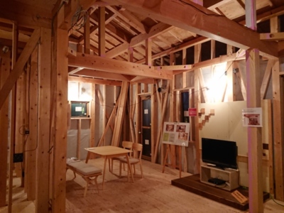 家を建てている途中、骨組み状態の実物の家の構造を見ながら、家がどうやって造られているか、家を建て...