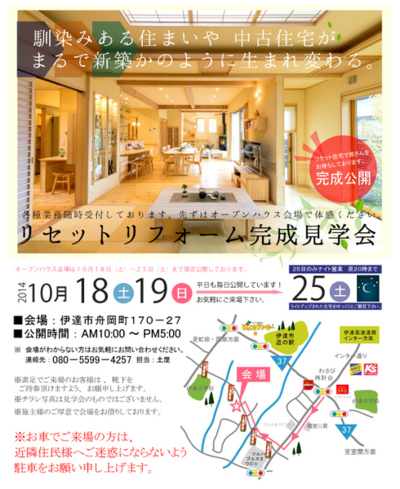 開催時間== リセットリフォーム住宅 完成見学会 ==