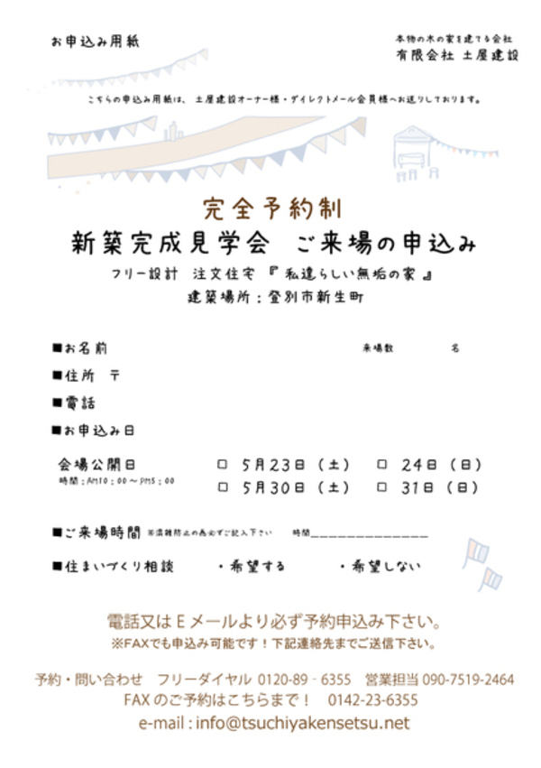 1月10日(土曜日)11日(日曜日)の期間、新築完成見学会を行います。