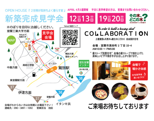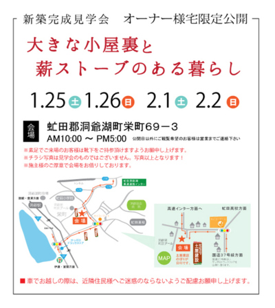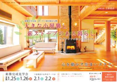 『薪ストーブと掘り炬燵で楽しむ家』の完成見学会を開催致します。