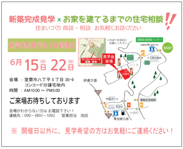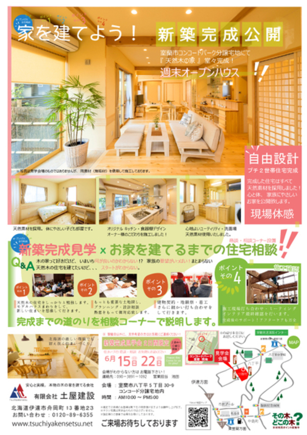 6月15日(日曜日) ~ 22日(日曜日) 2日間限定 北海道室蘭市八丁平 にて 新築完成見学会を...