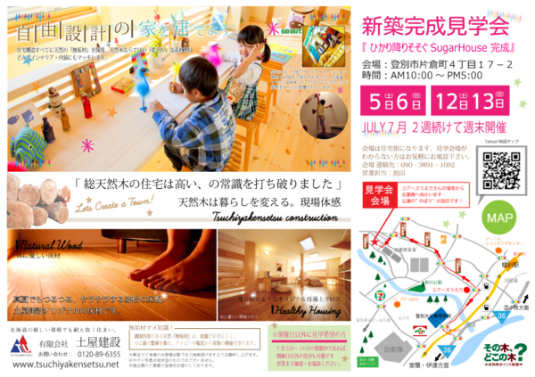 登別市片倉町に土屋建設が手がけました天然木の住宅が完成いたします。