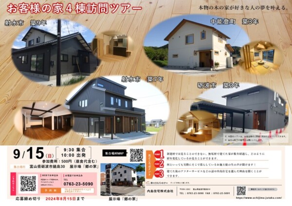 | 会場名 | 内島住宅㈱ 常設展示場「郷の家」集合後、お客様のお家4棟を訪問します。 |