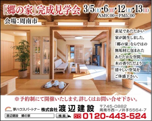 無垢材をふんだんに使い自然素材に包まれた「郷の家」が完成いたしました。