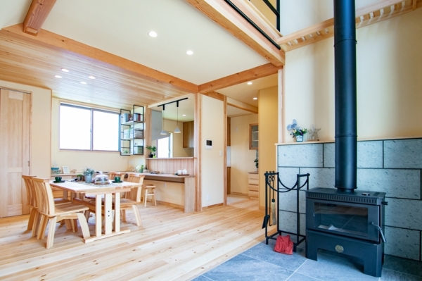 ・1階リビングには薪ストーブがあり、お家全体をあたためてくれます。