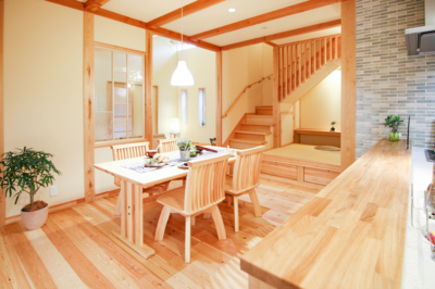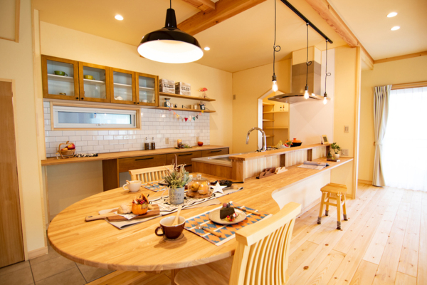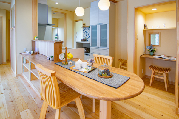 見どころは作り付けのオリジナルダイニングテーブルです。二階...